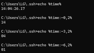 echo %time% #14:04:26.17