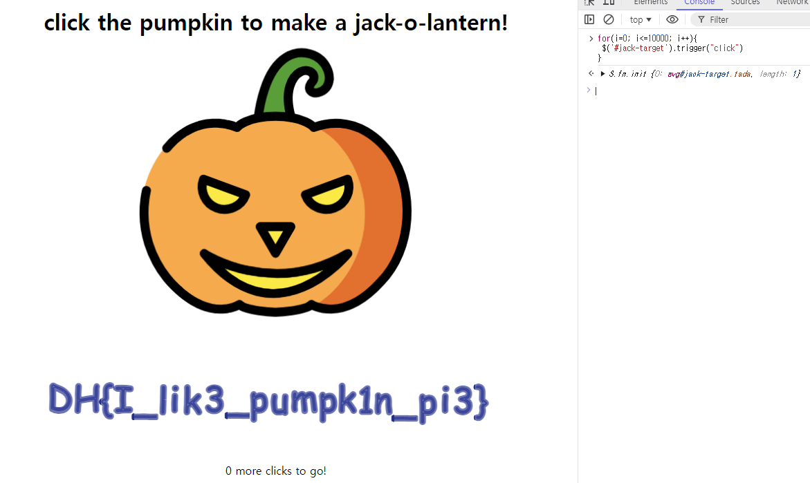 10000번을 클릭하고 싶지는 않아서 console 창에 반복문을 실행시켜보았다.