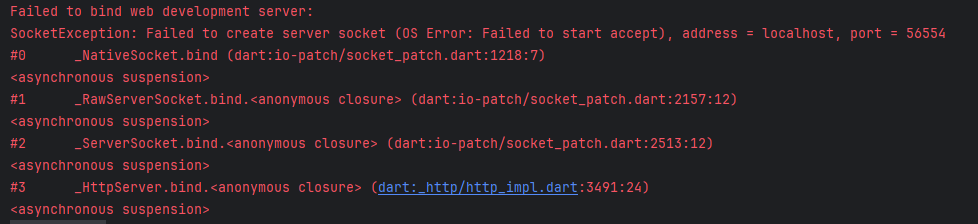 Android Studio에서 신규 프로젝트를 생성 후 아무것도 수정하지 않고 Flutter Device Selection을 Web으로 선택 후 App을 실행시켜 보았는데 세상에나 바로 오류가 출력되었답니다? 나 아직 아무것도 안했는데 왜 그래... SocketException: Failed to create server socket (OS Error: Failed to start accept).. 그냥 얼핏 봤을 때 address 또는 port가 문제인 거 같아 찾아봤는데 GPT씨는 오로지 포트만 문제라고 하지만 저 포트는 그 어느 것도 사용하지 않고 있는 포트라 확신을 가지고 address부분만 찾아보기로 했어요! 결론은 localhost가 안 먹는 걸로... localhost 또는 loopba..